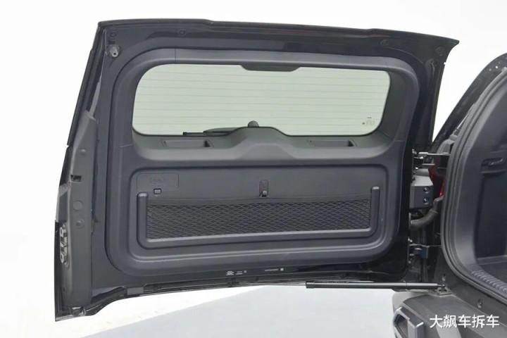 后尾门内侧配有挂网,有支持5公斤重量的挂钩。