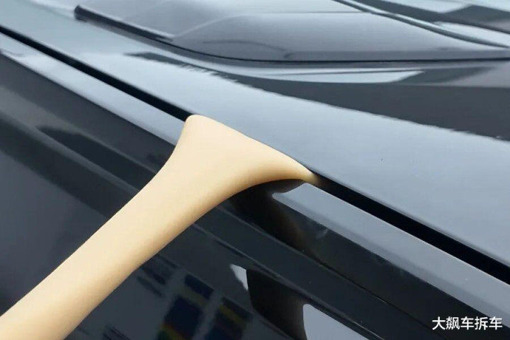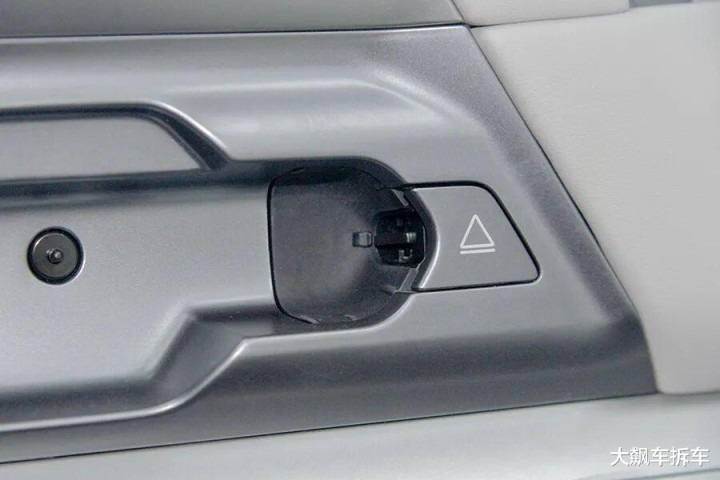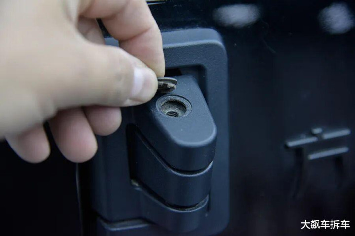 另外,尾门合页位置的外侧有一个橡胶盖,打开之后能看到螺栓孔位,这是安装标志旗、天线用的,这个设计比较方便。
