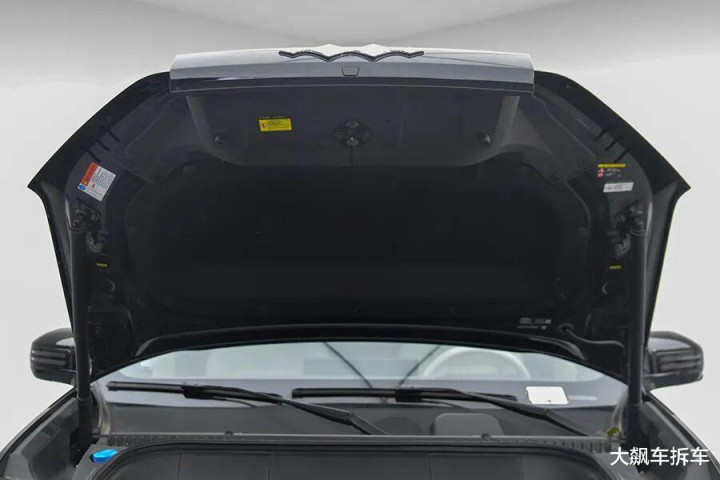 电动前备箱盖是通过电机力矩实现防夹功能,没有蔚来那种压力传感器,也没有小米那种视频识别。如果手放在车头附近没有问题,但要是放在合页位置,由于力臂非常小,所以无法判断力矩,可能会被夹伤。