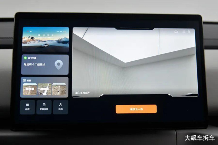 因为是无人机版本,所以在车机内可以直接查看无人机拍摄的图传内容。还可以通过车内软件,给无人机发送特定指令。