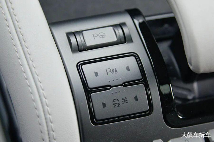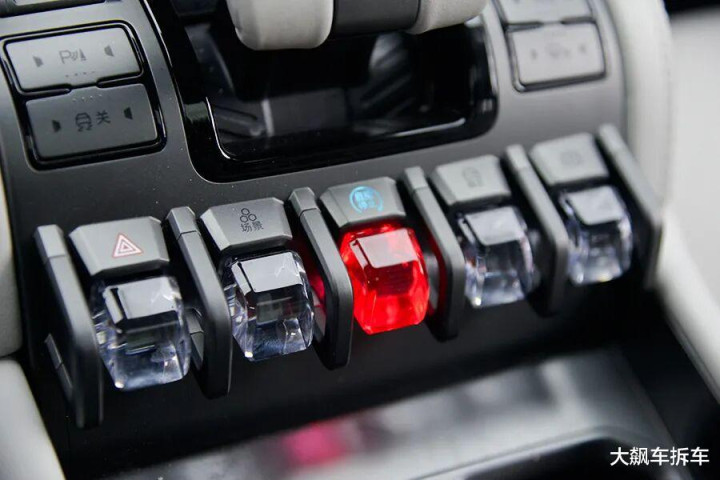 这辆车没有使用常见的怀挡,而是传统的电子档杆,左右两侧设计了很多物理快捷按键。