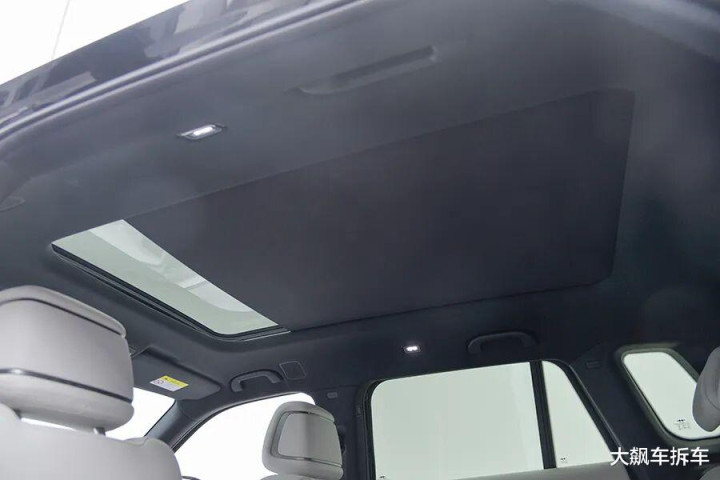 这辆车虽然是全景天窗设计,但遮阳帘只能打开一点点,因为上方有无人机收纳仓,估计是有安装线路,所以为了遮丑,系统禁止了遮阳帘全开。