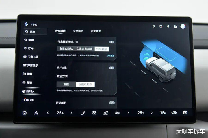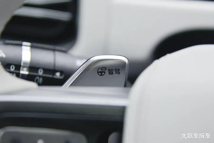 后方拨片是辅助驾驶的开启按键。目前,国家已经不让用“智驾”这两个字了,“辅助驾驶”更为准确一些。