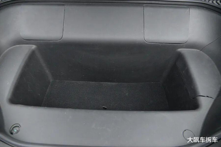 前备箱空间有限,可以放些杂物,掀开底板,还有额外的一些储物空间。