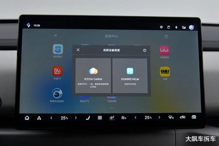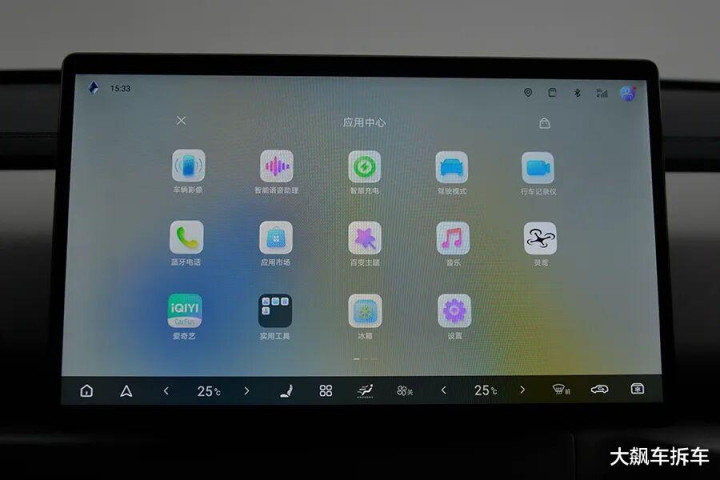 这辆车有一块15.6英寸中控液晶屏,但比亚迪已经不支持旋转屏了。搭载了骁龙8155芯片,使用是比亚迪自己的DiLink100车机系统。