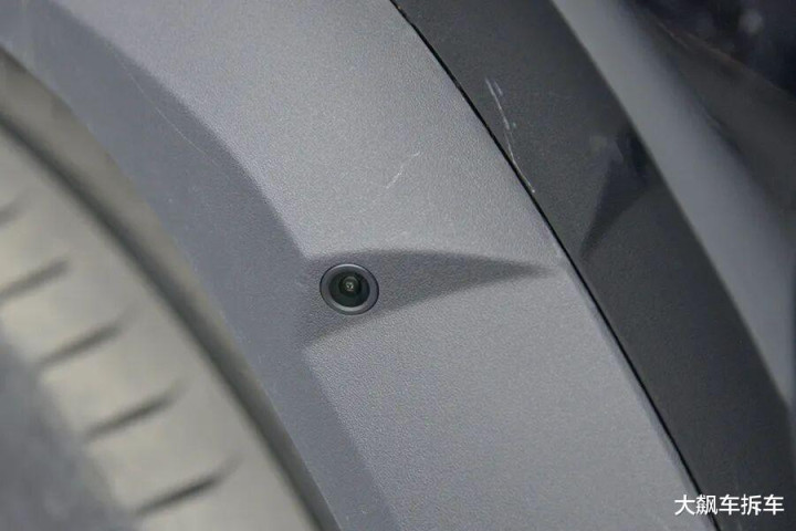可能是因为造型原因,两侧的摄像头没有安装在常见的翼子板位置,而是装在塑料轮眉上,但这个位置碰撞受损的概率高一些。